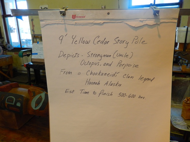 Sheldon Museum in Haines, AK. Native carver is working on a commissioned totem pole that will be installed on the ground of the museum. He told me it will take him about a year to complete the carving and painting. The smell from the fragrant wood ships was wonderful.