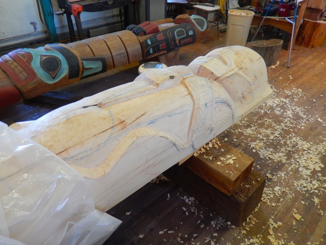 Work shop restoring totem poles.