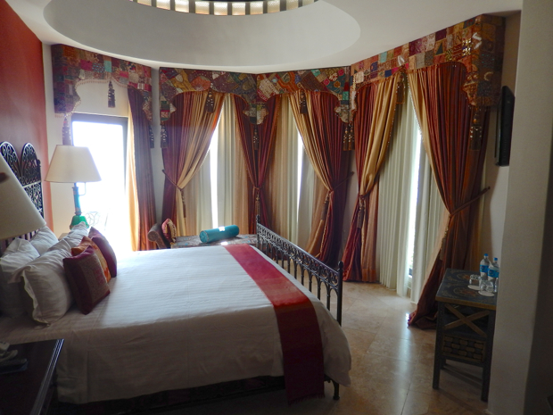 Janine is in the travel industry and develops incentive trips for sales organizations. On our visit to Panama she did a site visit to a high end boutique private residence that is owned by a wealthy family that owns most of the hotels in Panama. When their extended family is not using the huge home they rent it out to select groups. The home has four floors with twenty bedrooms each with private hot tub overlooking the Pacific Ocean on one of the premier bluffs in Panama City. Each bedroom is exquisitely decorated from a different country including: Thailand, Morocco, Spain, Mexico, Japan, China, and on and on. Check out some of these bedrooms.