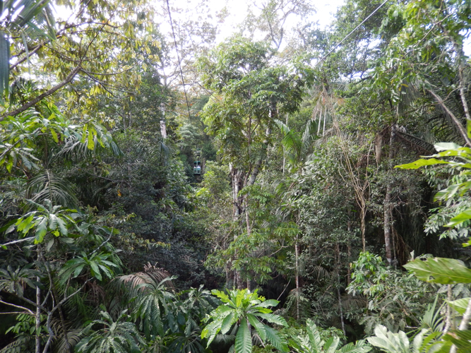 We toured the rain forest boating up the Panama Canal towards Lake Gatun. We cruised in a speed boat through small islands checking out the animal life stopping to see monkeys, birds, and other wild creatures. We also rode a jungle skyway up to the top of a local mountain and climbed a 100 foot tower for a look out over the rain forest and the canal.