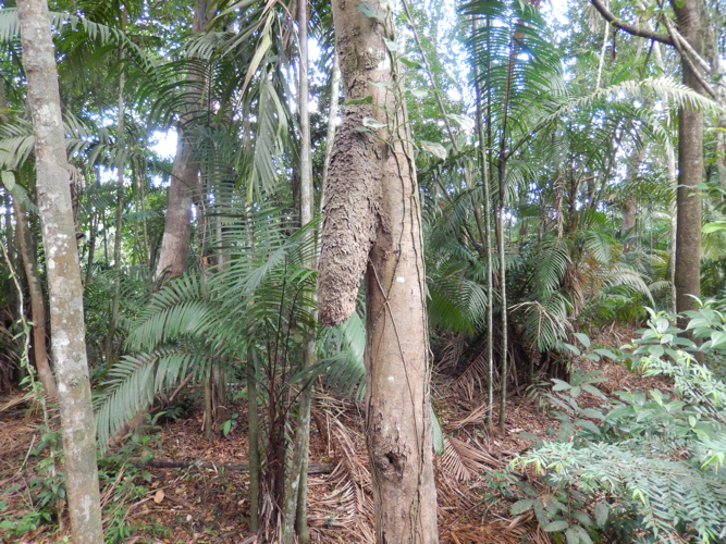 As the tree grew it dragged the ivy plant with it. The tree was about 50 feet high.