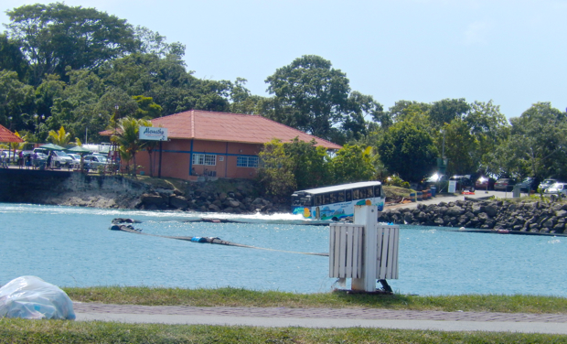 Caught this crazy aqua bus driving out of the water. This is like the Duck Tours in many cities that employ WWII landing craft for city and water cruising. This was a new vehicle and the first I’ve seen.