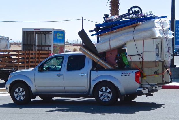 I’ve seen amazing things on many of my ventures, but very seldom do I run to get the camera just to prove I saw something like this. I was getting gas in Salton Sea after my trip to the Anza Borrego desert. When he hit the driveway the entire load started bouncing. Yikes!!!