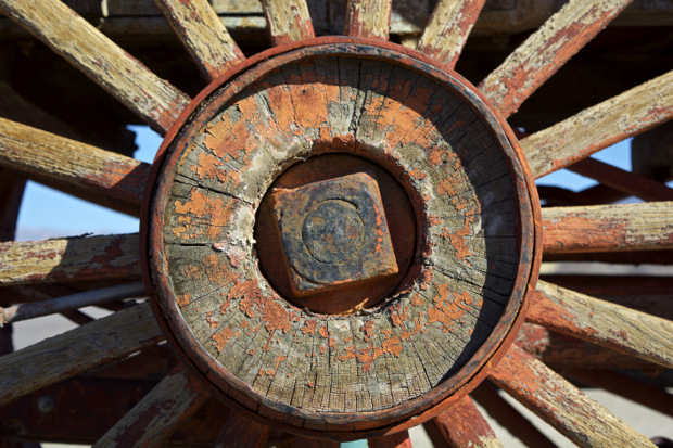 Wagons and water tank from one of the 20-Mule Teams. That’s my car in chilling’ out in the upper left by one of the adobe buildings from the 1890s.