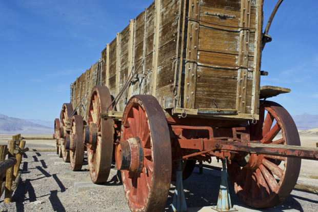 Twenty-mule teams were teams of eighteen mules and two horses attached to large wagons that ferried borax out of Death Valley from 1883 to 1889. They traveled from mines across the Mojave Desert to the nearest railroad spur, 165 miles (275 km) away in Mojave. The routes were from the Harmony and Amargosa Borax Works to Daggett, California, and later Mojave, California. After Harmony and Amargosa shut down in 1888, the mule team’s route was moved to the mines at Borate, 3 miles east of Calico, back to Daggett. There they worked from 1891 until 1898 when they were replaced by the Borate and Daggett Railroad. The wagons were among the largest ever pulled by draft animals, designed to carry 10 short tons (9 metric tons) of borax ore at a time. (this paragraph was stolen from the web)
