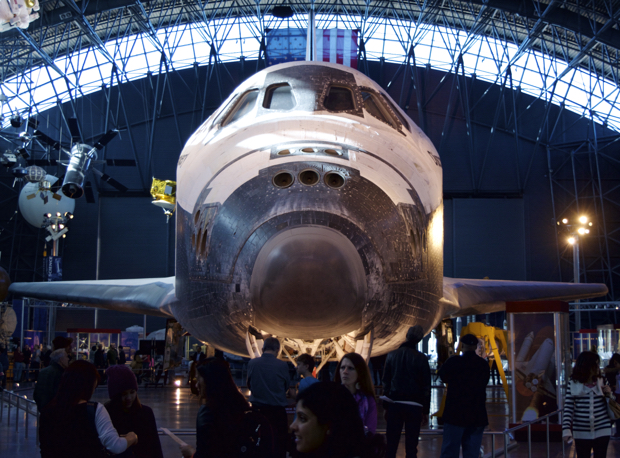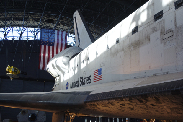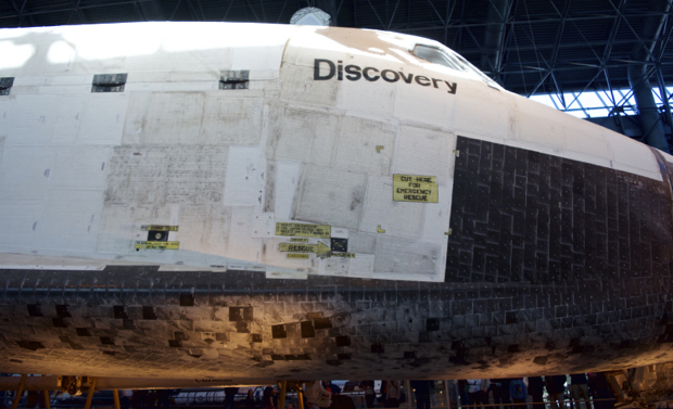 Smithsonian Air & Space Museum at the Dulles Airport outside Washington, DC houses the Discovery Space Shuttle, one of the original five. Discovery flew for 27 years with 39 launches giving it more time than any other spacecraft. Discovery carried the Hubble telescope into space and was the first shuttle to be retired.