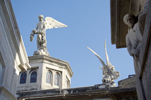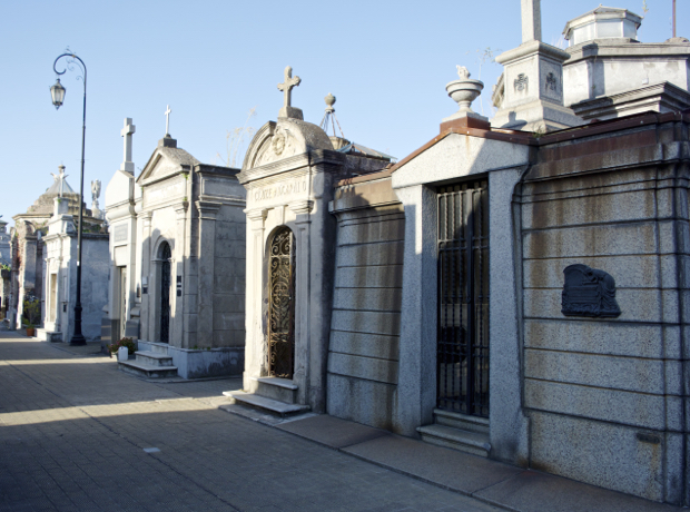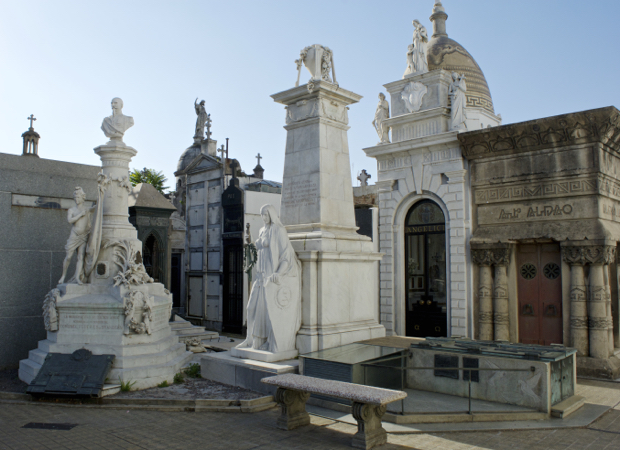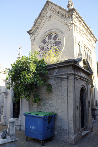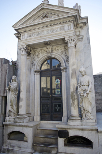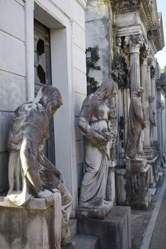 La Recoleta Cemetery is one of the most beautiful cemeteries in the world. It vies for top honors with Pere Lachaise (click here for earlier posts). La Recoleta is built around a cathedral and houses 4,691 above ground vaults. Many of the vaults are in disrepair with family fortunes changing and maintenance costs soaring. Some vaults are pristine and still receive flowers on a weekly basis.
