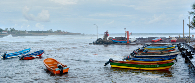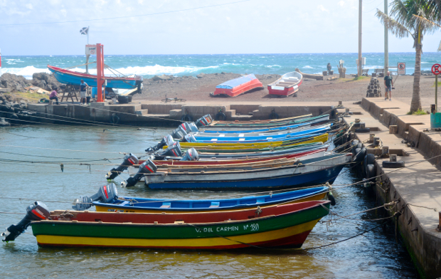 This is the tiny harbor in the downtown area of the island. There is no harbor for large ships. All good coming into the island are offloaded from a large cargo ship onto a barge that is floated to a rock pier and then craned on to the shore. This little fishing harbor is picturesque but you can see the rough seas just on theater side.