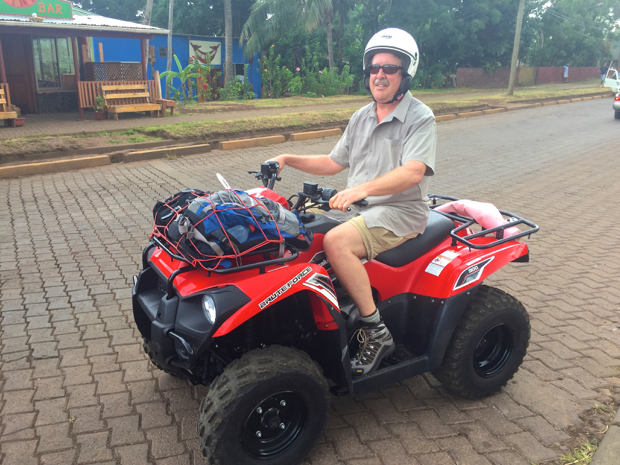 We rented a 4-wheeler and were shown a map of where we could ride. We were sternly warned not to go on the particular beach road (where the lava caves and sacred spots were). On to the 4-wheeler we climbed and off we went to the lava caves. We soon found out why they didn’t want tourists riding on this road. It got really rough and intense several times and Janine had to get off the 4-wheeler and from the side of the road guide me through a ew treacherous spots. We lived, and fell into some wonderful Moai parks that we wouldn’t have found had we listed to the rental person.