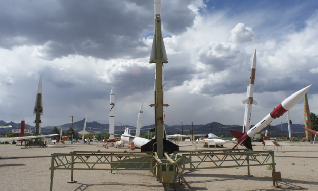 I saw the sign and had to turn. Missile museum!!! For someone who is into aircraft museums, this was a dream come true. All of the missiles and rockets from history were there. It was housed on the active White Sands Missile Test Range so I had to park the bike outside, go through security, and walk in to see the static displays. This range is where they tested the first atomic bomb before the drop on Japan in WWII.