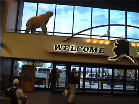 Greeted by a polar bear at the airport.