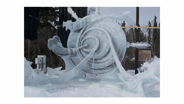 Each year, Fairbanks, AK is home to the world champion ice carving competition. It’s held in Fairbanks because the average temperature during the day all winter is below freezing. Carvers have weeks to prepare their beautiful and inspiring creations. We were there on the last weekend the competition and many of the sculptures were beginning to melt and fall apart. A week later, there would be nothing left of the amazing works of art so we were excited to view some of the ephemeral art.