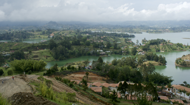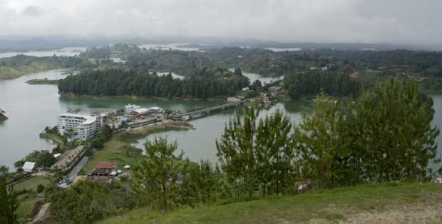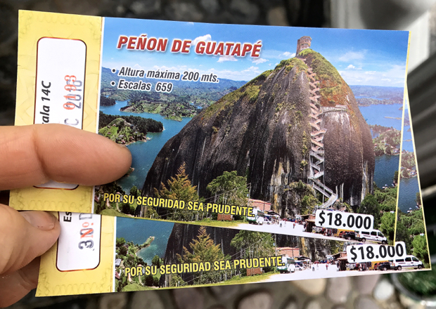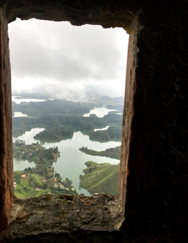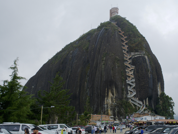 El Penon de Guatape is the Rock of Gibraltar of Colombia. This massive boulder juts out of the jungle and farmland as if it landed there as a meteor. A number of years ago, three local climbers decided to climb the rock and spent three days using climbing gear and building bamboo ladders to reach to top. They realized that this might be an interesting tourist attraction. So one of the climbers purchased the land around the rock and began building the stairway to the top. It is now a major tourist attraction that helps feed the small beautiful town of Guatape with hungry tourists.
