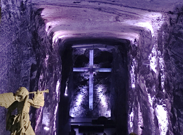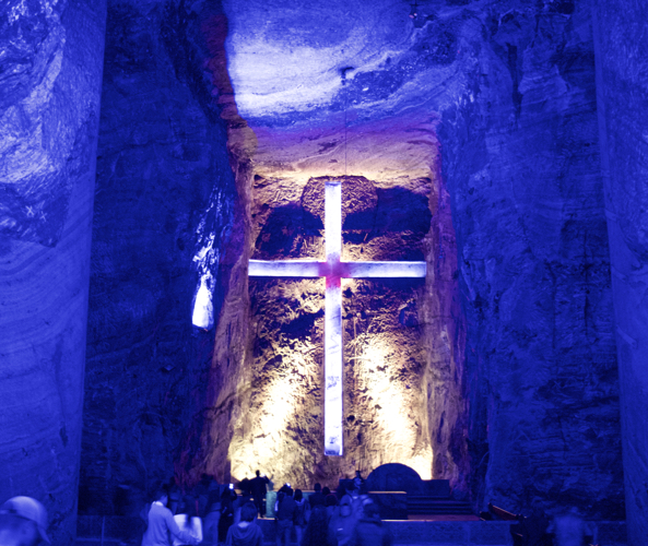 The Salt Cathedral of Zipaquira is an underground Catholic church build in a former salt mine 600 feet below the ground. The mine also houses 14 small chapels, representing the stations of the cross. As we walked with our tour group deeper into the mine, the devout would throw themselves down at the various crosses in prayer. We saw what we could stand, but it got a little too Catholicy for us and we split.
