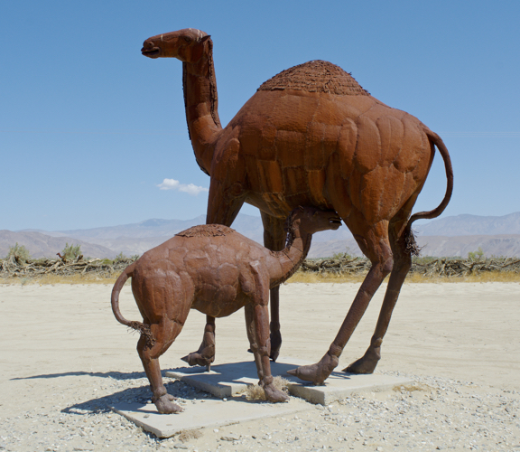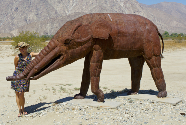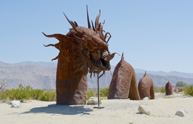 Elephants, a herd of wild stallions, dragons, sloths, and a huge eagle sitting in the middle of the desert? If you think that’s nuts, then you are in Borrego Springs, CA. Galleta Meadows is a sculpture environment replicating the creatures that lived in the area 3 million years ago. Dennis Avery, land owner of Galleta Meadows Estates in Borrego Springs envisioned the idea of adding ‘free standing art’ to his property with original steel welded sculptures created by ‘Perris Jurassic Park’ owner/artist/welder Ricardo Breceda based in Perris, California. There are 129 metal sculptures and a 350 foot-long dragon that crosses under the road. located in Borrego Springs.
