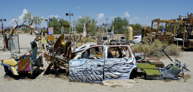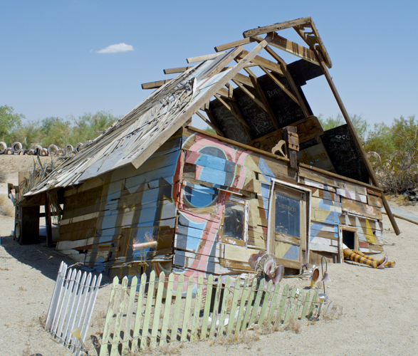 East Jesus is an experimental, habitable, extensible artwork in progress since 2006 begun by the late Charles Stephen Russell in Slab City, California. The inhabitants of East Jesus and offsite members provide a refuge for artists, musicians, survivalists, writers, scientists, and laymen. They are dedicated to providing a working model of an improbable improvised community. Completely self-contained and run entirely on solar power, East Jesus attempts to use and recycle every bit of consumable trash. They are unique in the Slabs in that they have Human Manure composting to reduce and improve the impact on the local desert environment. (stolen from the web)
