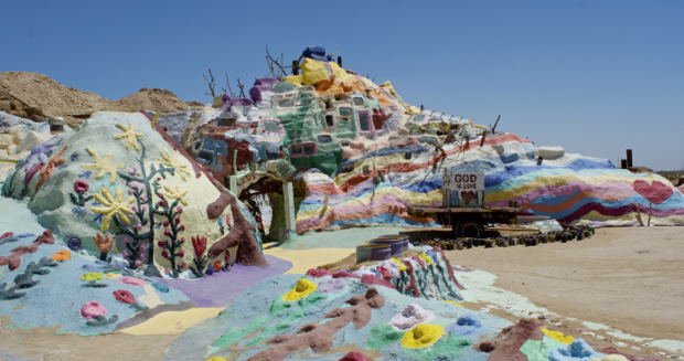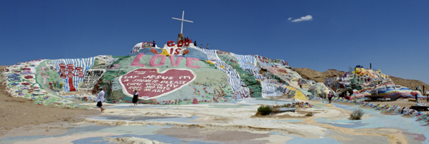 Salvation Mountain is located in the lower desert of Southern California in Imperial County just east of the Salton Sea and about a hour and a half from Palm Springs. Salvation Mountain is Leonard’s Knight’s tribute to God and his gift to the world with its simple yet powerful message: “God Is Love.”