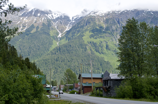 Hyder, AK is a tiny town of about 50 – 60 people with a six building main street. Once a gold rush and fishing town, it is now a oddity with a cult bar were you get “hyderized.” Most of the people only live here during the summer season and run the gift shops and bars. It is the only city in the United States without any law enforcement presence. I was told that was not needed since everyone in the town has a .357 handgun handy. I spent the afternoon there and talked with a lot of interesting people – all who had roots in Southern California.
