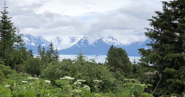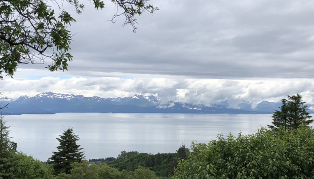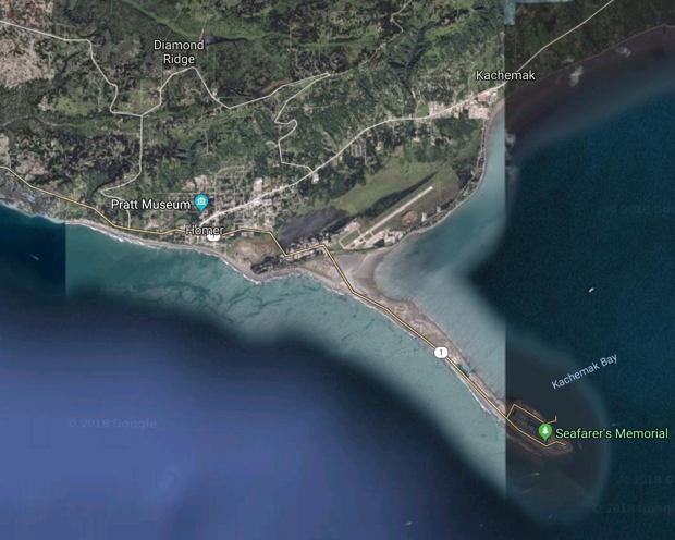Homer is the halibut fishing capital of the world and also known as the “drinking town with a fishing problem.” It is a couple of hundred miles south of Anchorage and the highway travels through some of the most gorgeous areas of southern Alaska. Along the Turnagain Arm and up over Moose Pass, the waters and mountains are memorable. I wanted to ride my motorcycle to the “end of the road” before I travelled north to the other “end of the road” in Prudhoe Bay. Homer has a section called the “spit.” It is a long section of land that houses the cruise ship port, commercial fishing fleet, art galleries, and camping areas. The “spit” is where most of the action in Home is.