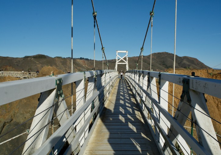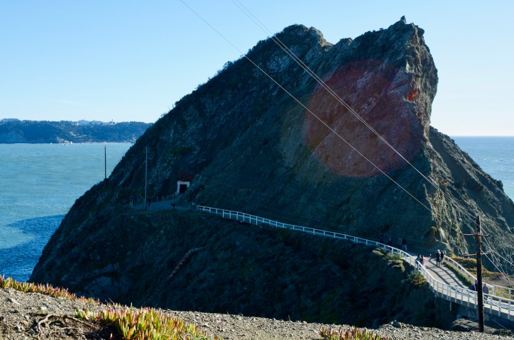 The Marin Headlands is a hilly peninsula at the southernmost end of Marin County, California, United States, located just north of San Francisco across the Golden Gate Bridge, which connects the two counties and peninsulas. The entire area is part of the Golden Gate National Recreation Area. The Headlands are famous for their views of the Bay Area, especially of the Golden Gate Bridge.