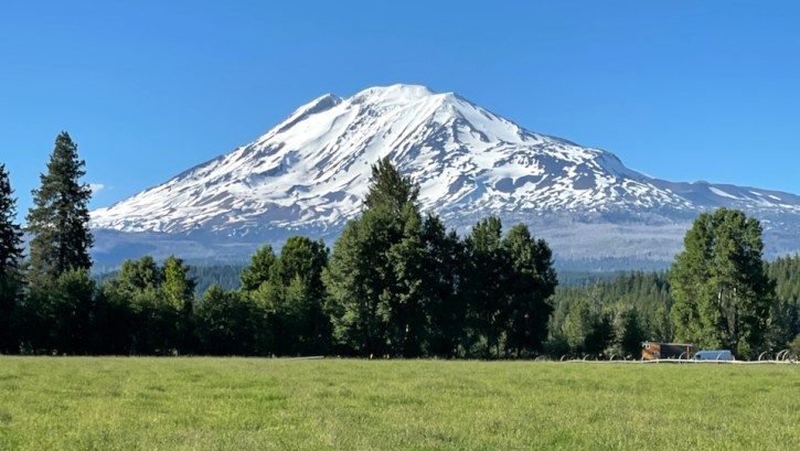 After following the Columbia River for several hundred miles, I stopped to visit my friends Doug and Janet in Trout Lake, WA. It was always great to see them. Doug and I go back forty years on the vocal jazz education trail teaching thousands of choral directors to be better jazz musicians. I visited them several years ago on my way to Alaska. Doug had previously warned me about the Hood River Bridge knowing that I was on the Oregon side of the Columbia River and needed to cross into Washington State. For this trip he also reminded me. I have crossed many bridges on my adventures but none like this. It is an old-school, veeeeery-long, metal-decked bridge. There are metal-decked bridges on the way to Alaska but are not as old as this one with deep grooves between the parallel metal guides. This bridge is frightening to cross. Because of the wear of the decking, the bike tires dip into the grooves of the bridge and it attempts to take you where you may not want to go. If you go slow, the narrow bridge can throw you into on-coming traffic. Knowing I had to cross this bridge, I watched all of the bike videos on metal-decked bridges. The key was to go faster than you think you should. After paying my toll, I waited for previous traffic to get way ahead of me. Instead of going twenty mph, I cranked up to thirty-five. The bike floated above the grooves, squirreled all over the lane, and with my sphincter in my throat and my heart pounding, I eventually reach pavement.