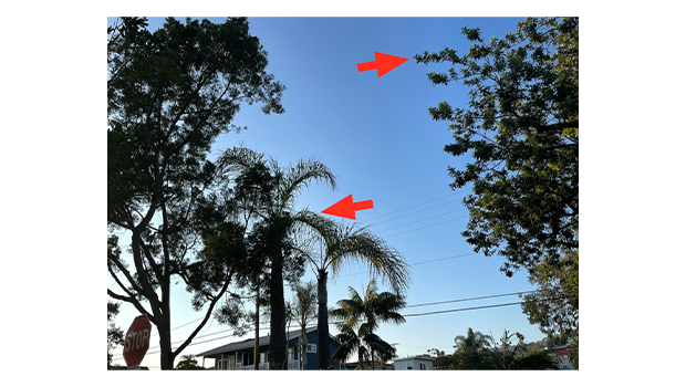 I was sitting on the front patio enjoying a nutritional supplement when I noticed a large spider dangling from the highest branch of an overhanging tree on the right of the photo. The spider spun a long line from the tree down about ten feet and waited for the breeze to swing him back and forth. Eventually the breeze swung the spider to the palm tree on the left of the photo. He tightened up the one long line and shinnied across to the original tree dragging another thread behind him. He then climbed out to the middle and began dropping vertical lines down from the main two lines. After several vertical lines were dropped he began connecting the vertical lines together forming a lattice structure between the two trees. This went on for over thirty minutes. I figured this was going to be a large web across one of the best places to catch bugs that night. I left him to his own demise and eventually found the web gone in the morning.