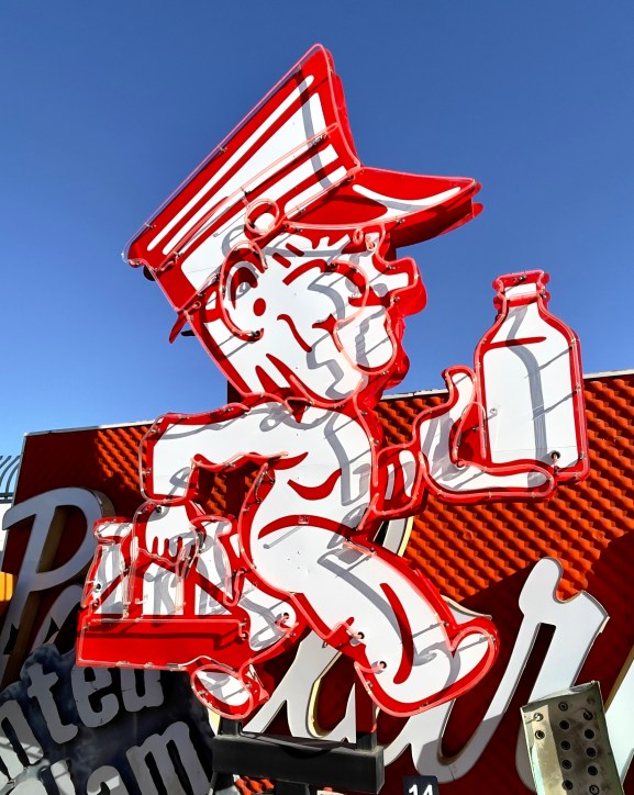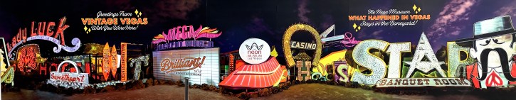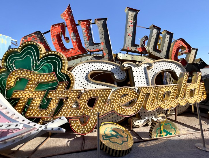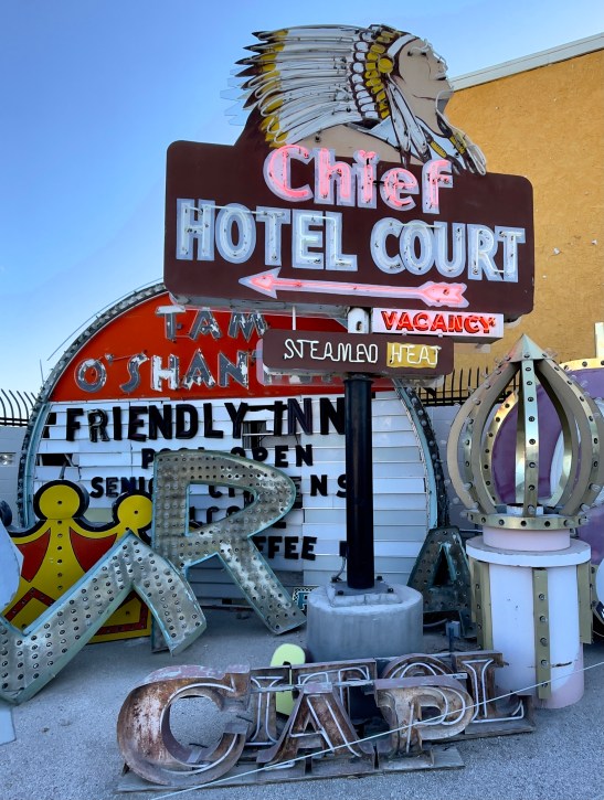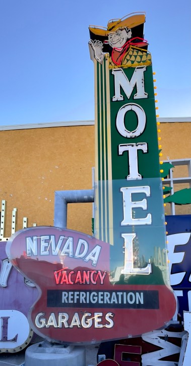Las Vegas is not one of our favorite cities, but the last couple of times we have found our way to interesting things of which most people are not aware. Since Vegas began years ago, hotels and businesses have come and gone. Somewhere in the past a person had the foresight to save the old neon signs preserving Vegas’s past. This is the Las Vegas Neon Sign Museum. I have want to go to this for years and this past trip we finally did. If you get a chance to visit, you might want to select a night visit when many of the signs are turned on. We were there in the day and it was still interesting.