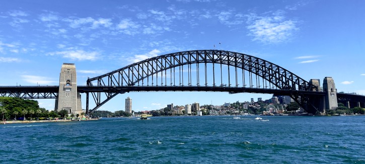 Janine and I visited Australia during the Xmas break. We did not travel around Australia but stayed within the confines of the Sydney Harbor area. Our four days were filled with walking, boat rides, eating at fine restaurants and relaxing during Australia’s summer. Sydney Harbor is the hub for all water travel within the region. Miles and miles of shoreline and many smaller cities dot the area. This harbor was teaming with boats of all sizes. Water taxis plowed the waves hauling tourists from city to city alone the shores. The Opera House and the Sydney Harbor Bridge were the anchor tenants to the exciting world population that strolled throughout the city. Notice that Sydney is the focal point for all of the rivers and Tasman Sea ports.