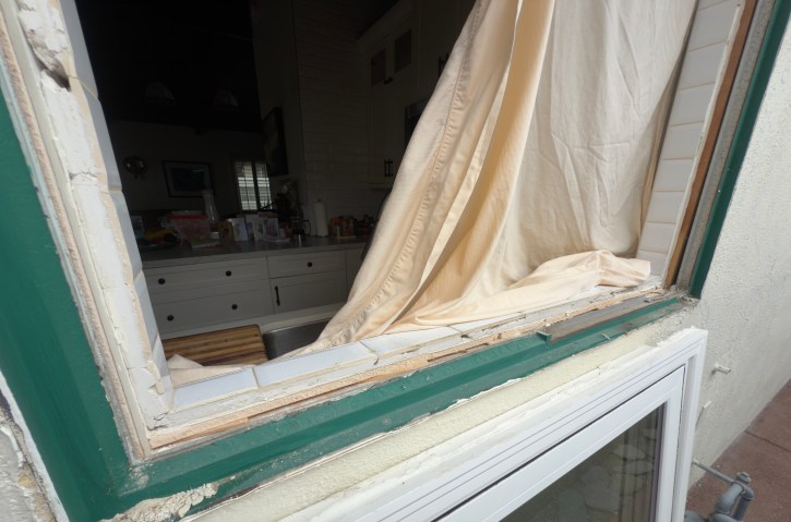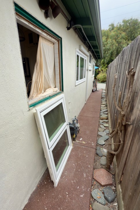 Four years ago we purchased a beach bungalow in Dana Point, CA. It was a perfect space for us. I had room for my piano and Janine had three gardens. We could walk to the beach in 15 minutes, to the store or to restaurants. Probably the best part was it was only three exits from school and against the traffic in the morning. We loved that house and fixed it up for an idyllic life in SoCal. But when I retired we sold the house and moved to Hilo, HI. But during the closing of escrow, apparently the house got pissed that we were leaving. Three days before funding, the water heater shit the bed. It couldn’t have waited four more days- NOOOOOO! We negotiated to stay in the house for another 30 days after closing. One night we were sitting in the living room and we heard a car crash coming from the kitchen. The window over the kitchen sink decide to jump out of the house onto the cement walkway. What a sound! When does a kitchen window jump out of a house? Well it did!!!!!