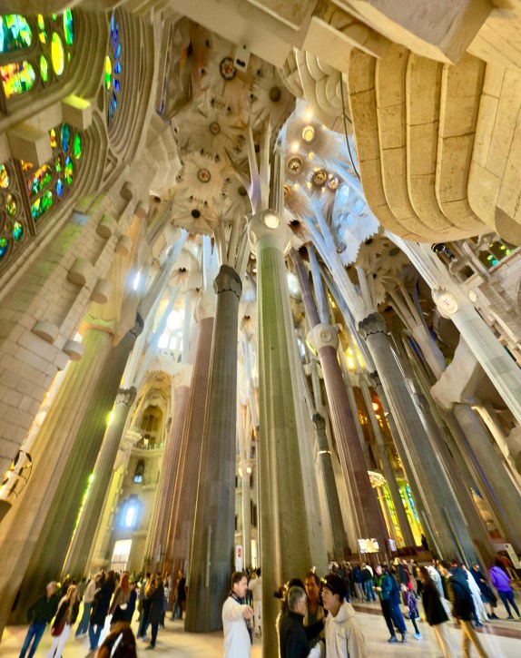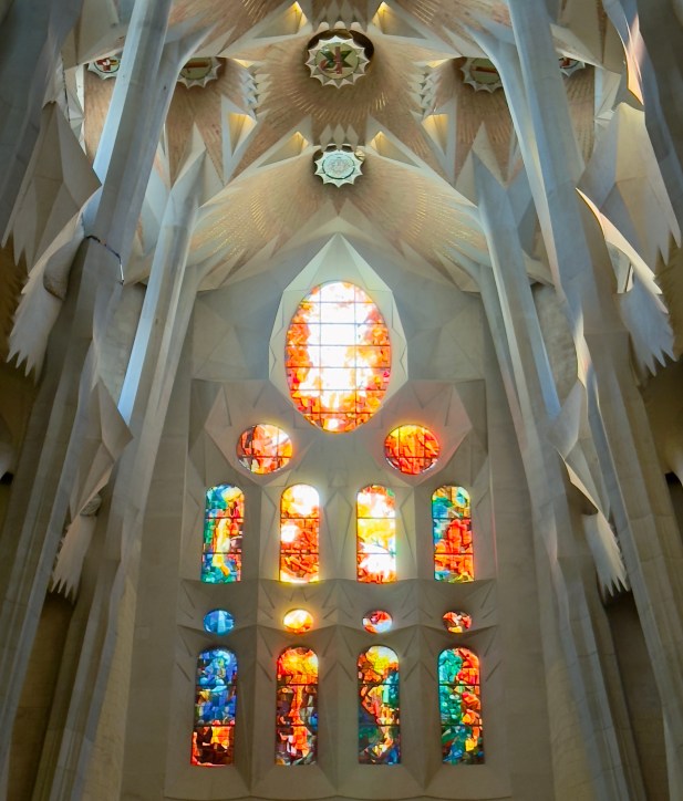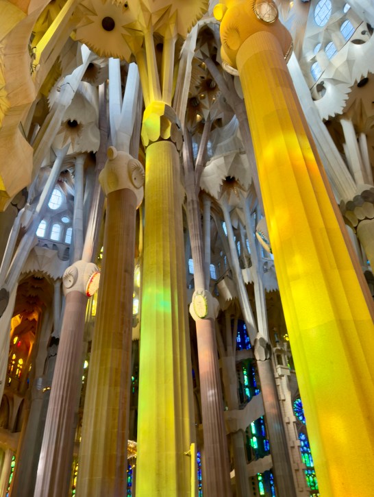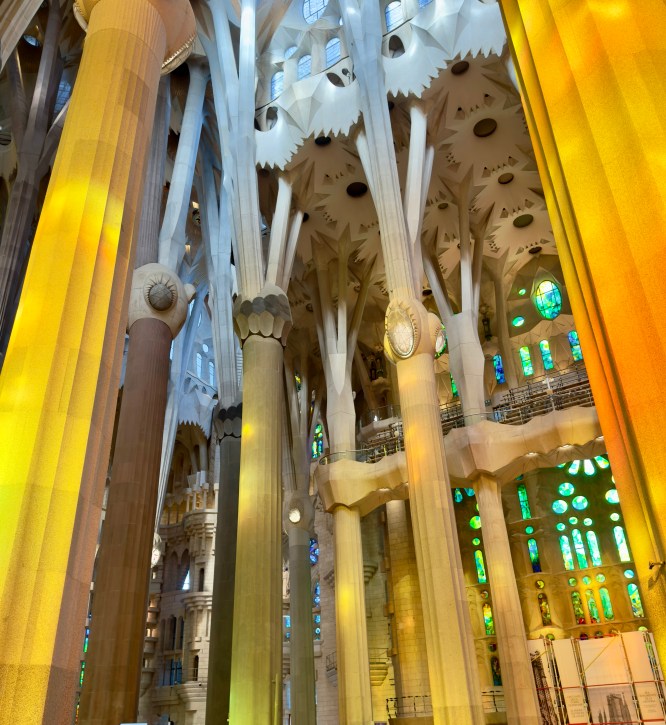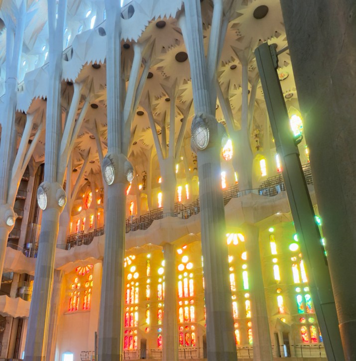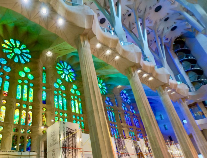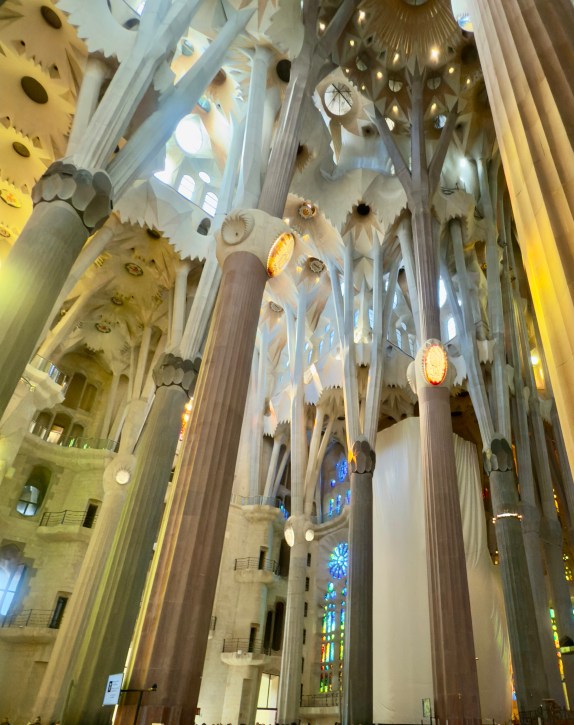 The Sagrada Familia is a privately funded cathedral that when completed will be the the highest religious building in the world. It is the most amazing building to see from the outside, but inside it is a masterpiece of design, artistry, and imagination that is beyond belief. There are no straight lines in the major construction aspects of the building. Antoni Gaudi designed the entire structure to reflect nature. Inside, all of the columns reaching to the sky mimic standing in a huge forest looking up into the trees. The major stained glass windows face west so when sunset comes, the colors in the cathedral change every minute as the sun moves.