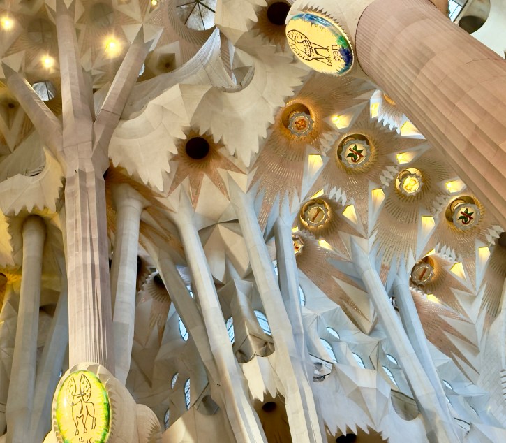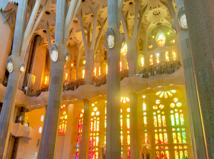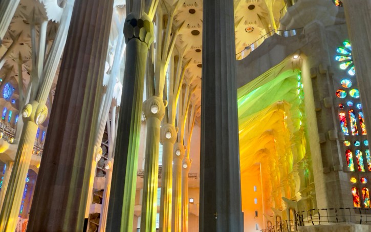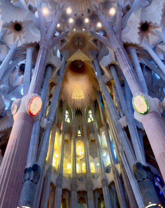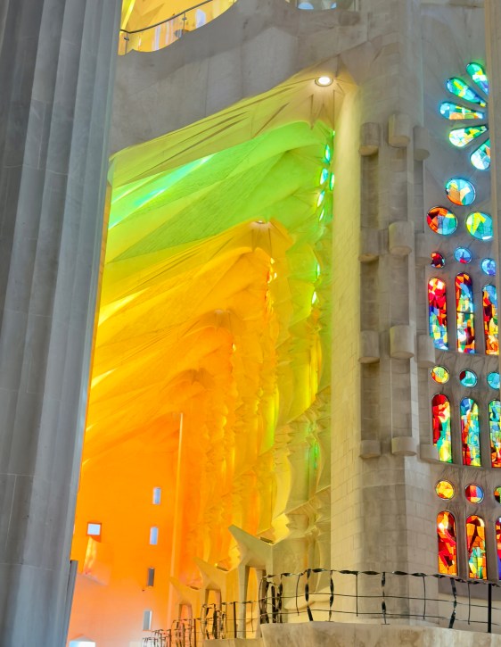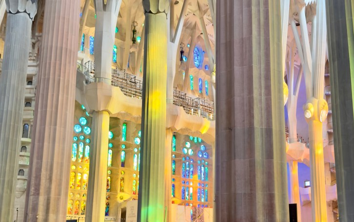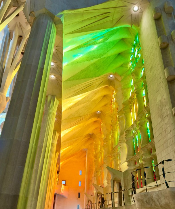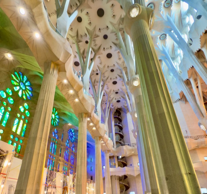 The Sagrada Familia is a privately funded cathedral that when completed will be the the highest religious building in the world. It is the most amazing building to see from the outside, but inside it is a masterpiece of design, artistry, and imagination that is beyond belief. There are no straight lines in the major construction aspects of the building. Antoni Gaudi designed the entire structure to reflect nature. Inside, all of the columns reaching to the sky mimic standing in a huge forest looking up into the trees. The major stained glass windows face west so when sunset comes, the colors in the cathedral change every minute as the sun moves.