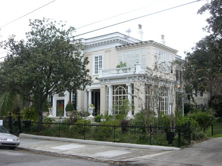 The Garden District in New Orleans is one of the most prestigious areas of the city in which to live. Large homes with huge lots dot the blocks. Many of the homes had carriage houses and slave quarters that have been turned into bungalows and pool houses. Here are a few photos of some of the various styles of upscale homes in the Garden District area.