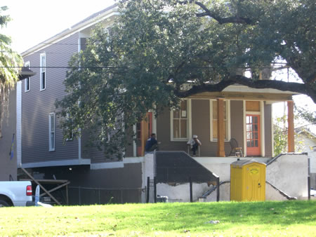 So what’s happening in the New Orleans renovation arena? Well, it’s called “jackin’ your house up.” Many of the homes in the flood prone areas took advantage of a Federal program to help them raise their homes above flood level. Here are two examples. Also, here are two homes waiting for renovation or the wrecking ball.