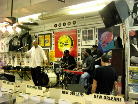 The Louisiana Music Factory is one of the funkiest music shops in the world. It caters to New Orleans and Louisiana music and is the center of CD shopping when in town. Every Saturday afternoon the store has live music to promote various artists. This afternoon Philip Manuel performed a 30 minute set. Click on the movie below to see a few seconds of his performance.