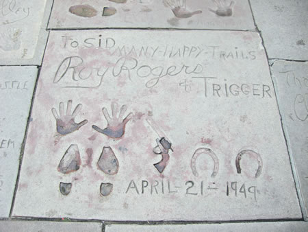 Grauman’s Chinese Theater on Hollywood Blvd. is home for the “put your hands in cement” actor’s club. Along the sidewalk are hundreds of bronze stars honoring the Hollywood famous. It used to be that only the ultra famous could get a star on Hollywood Blvd. Nowadays, even minor stars can pay the $25,000 and have their name bronzed along the walkway.