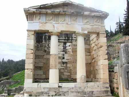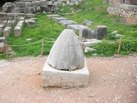 Temple of Delphi. The Oracle stone was where the arrow is.