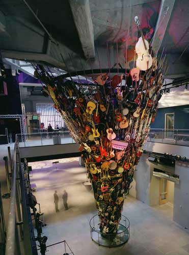The Experience Music Project is one of the best Rock and Roll museums in the country. I have been to the Rock and Roll Hall of Fame in Cleveland and it sucks. You can see more rock and roll history at a Hardrock Cafe then you can at the Rock and Roll Hall of Fame. I thoroughly enjoyed the museum. The guitar collection is amazing along with the Jimi Hendrix memorabilia. Here are a few photos some I snagged from the web (they wouldn’t let you take your own).