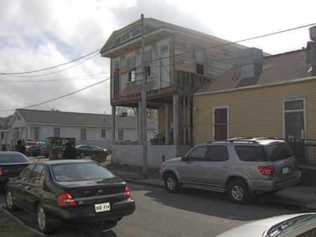 Even four years after Hurricane Katrina, there are still homes that have not been repaired. When you understand that too many residents of New Orleans didn’t have proper home insurance it’s no wonder that this is a common site across the city. This row of houses is only two feet above the water level of the bayou across the street. When the hurricane and flood pushed the water six to eight feet above the bayou level these homes were flooded. You can see the water lines on them. A neighbor was so nervous of future floods he jacked his house up to three stories.
