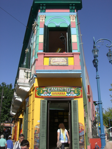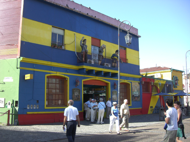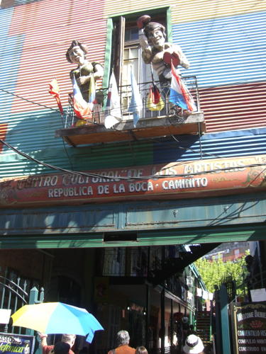 La Boca means “the mouth” and is a neighborhood in Buenos Aires at the mouth of the river. It was the section of the city where new immigrants first stayed crammed many into small rooms. Since it originally was a poor area, and near where the cargo ships were repaired, the locals would get the left over paint from the ships and use it on their homes. Since it was free, it came in many colors. This is what has made La Boca a colorful area of the city. It was also an old red-light district and thus the sensual dance Tango originated here. It reminded me of the funkiness of the French Quarter in New Orleans.