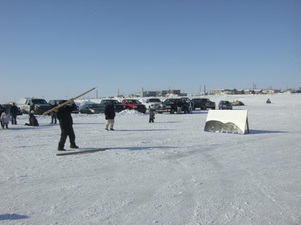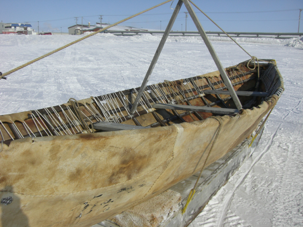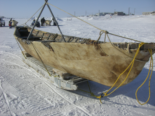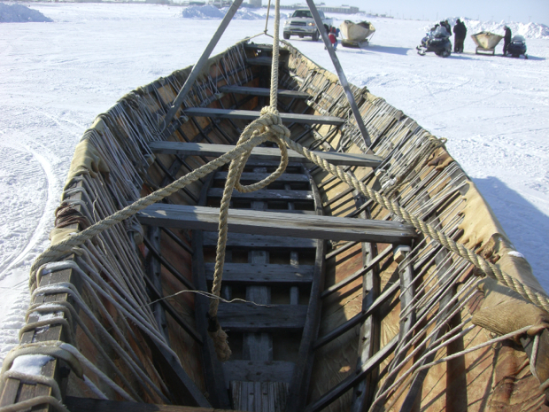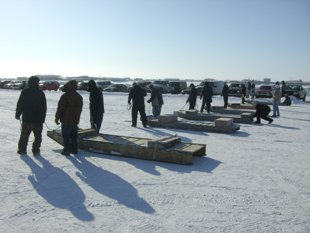 Umiaq race. Tow your sled 100 yards, tie on your boat and tow it back.