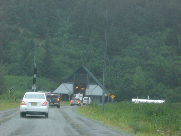 Waiting to enter the tunnel. One trip in each direction every half hour.