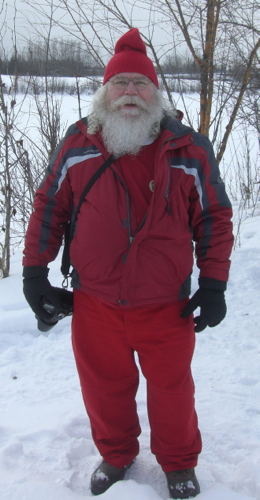 Spotted Santa at the Iditarod race and had to take his picture. He told me Mrs. Claus let him out for a little bit so he could go to the race.