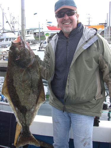 This is my first fish. It’s a 27 pound halibut caught with my friend Steve Haber of Habervision Sunglasses. Steve took me out of Homer, AK to guide me on my first halibut hit. We went to some of his favorite fishing holes out in the bay and fished at 200 feet. Here’s a map of where we fished. Just the two of us and I didn’t get sick.
