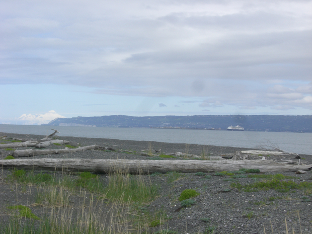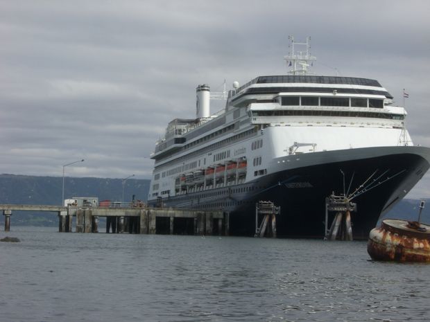 Looking towards Homer and the cruise ship with Mt. Redoubt volcano on the left in the distance.