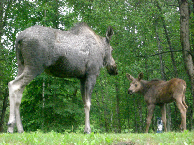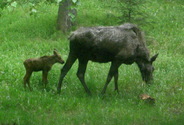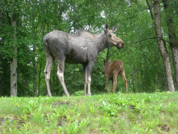 It’s moose season in Anchorage, AK. Moose are everywhere. Here are the two cow moose with their calves that roam around my house. Got to be care when you go out in the morning to get in your car. They could be standing around the corner of the garage and scare the crap out of you as you get in the car. You don’t want a moose that close to you if you aren’t packing.