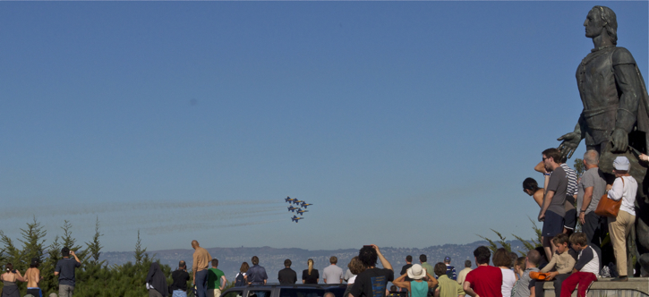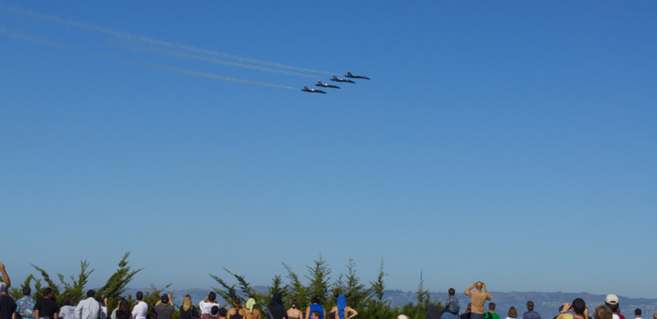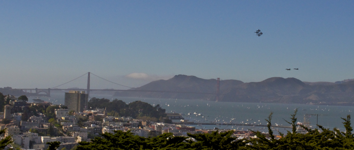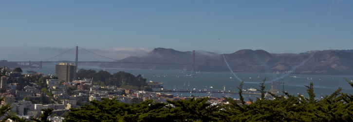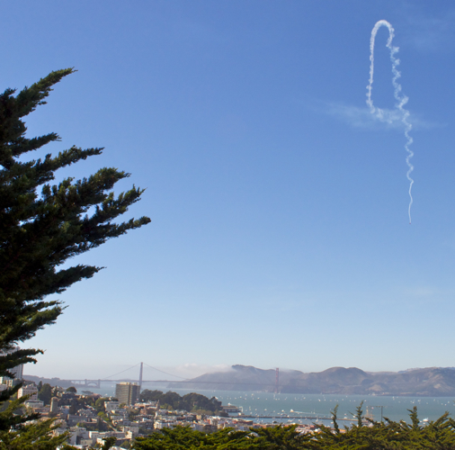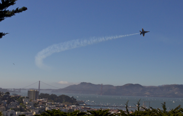 Caught the Blue Angels during Fleet Week in San Francisco. There were several hundred thousand people down at the wharf and I didn’t want to be with them. I out smarted them all by climbing the hill to Coit Tower and watching the show with the Golden Gate Bridge in the background. Check out this short video of some of their tricks.