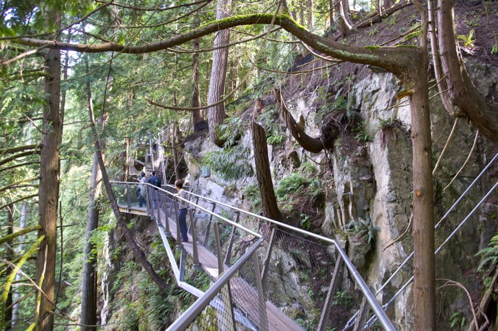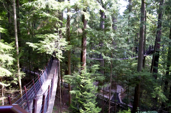 The Capilano Suspension Bridge north of Vancouver is a 446 foot suspension bridge 230 above the Capilano River. I hadn’t been here in over forty years so it was really cool walking across the gorge again. New bridge connections through the trees as well as a new cliff walk feature made the trip even better this time.