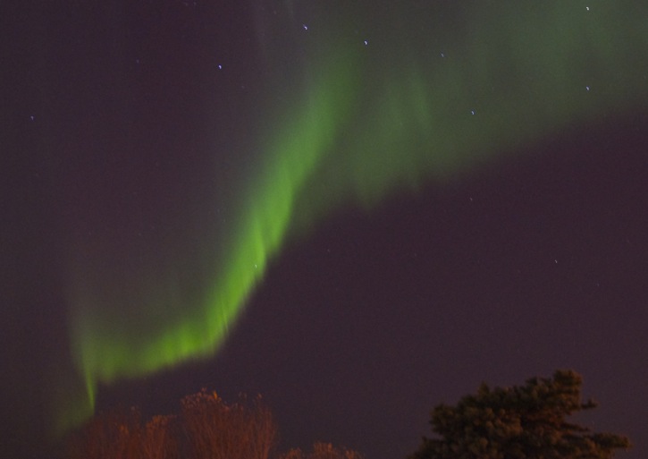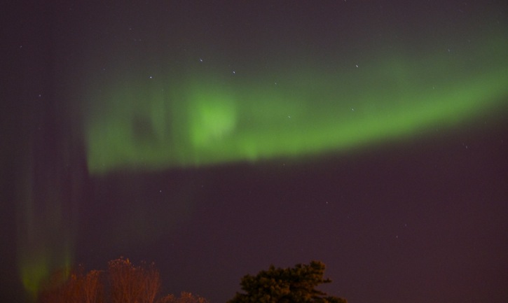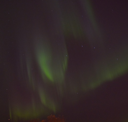 Geophysical Institute web site indicating that this night is very quiet and if you are lucky to see any northern lights they will be in the green band from Barrow to Ft. Yukon