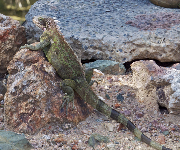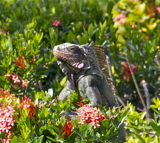 Iguanas are all over the island of St. John. We stayed at the Westin and even a posh resort like this has to deal with the magnificent creatures. They are some of the last prehistoric animals to inhabit the earth. They are vegetarians and won’t harm you, but will hiss, puff up, and show their spikes if you come near. A large group lived on the resort property so I tracked them down and got these shots. Some of the big boys were fifteen pounds and aver 36 inches long. Quite a handsome crew.