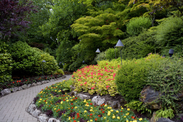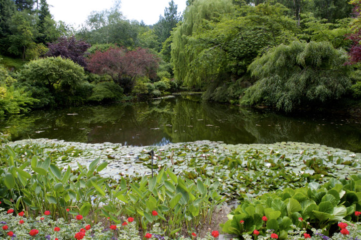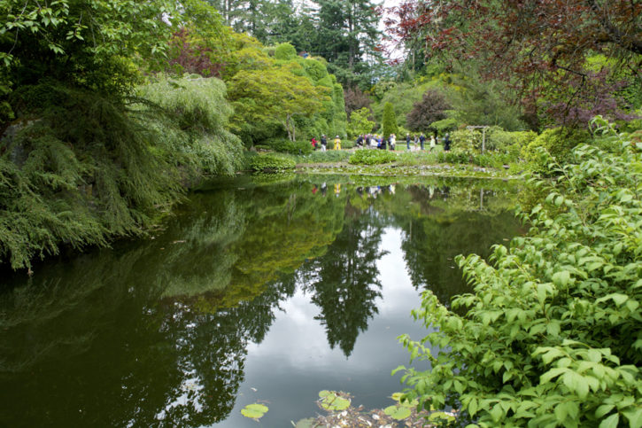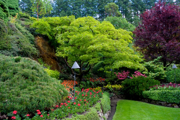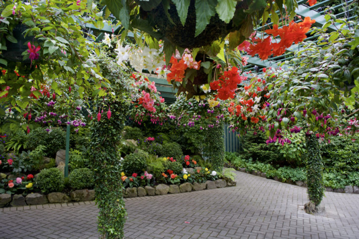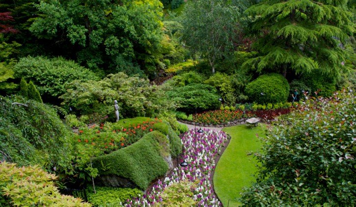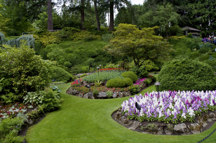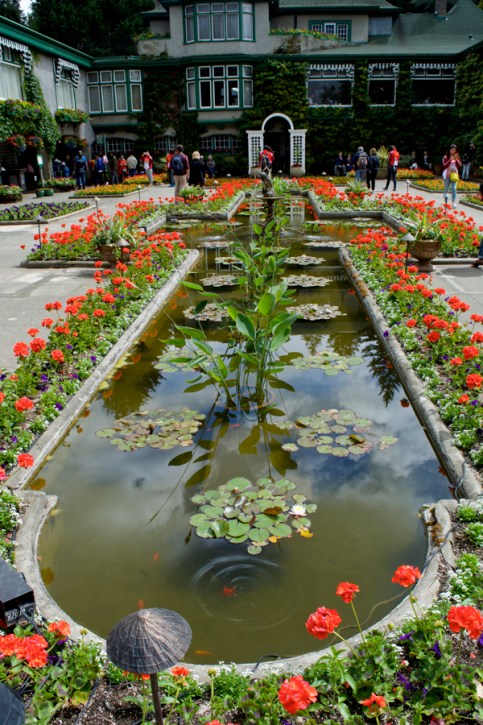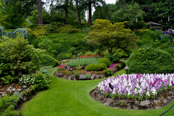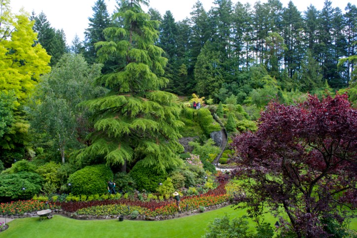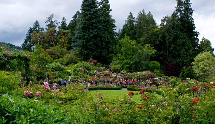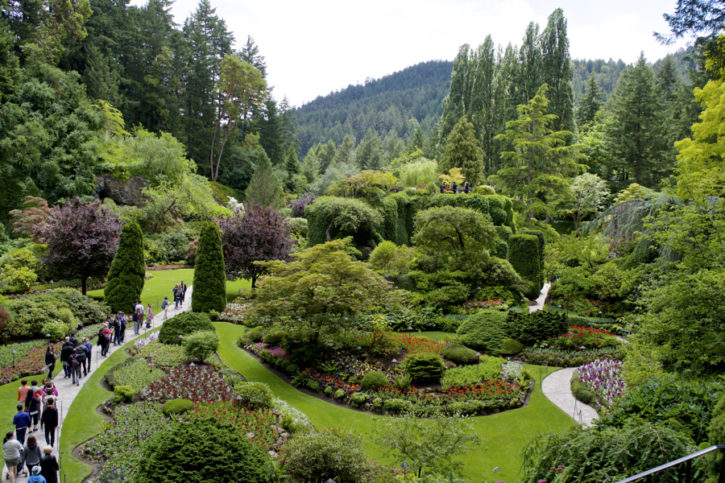 The Butchart Gardens is a group of floral display gardens in Brentwood Bay, British Columbia, Canada, located near Victoria on Vancouver Island. The gardens receive over a million visitors each year. The gardens have been designated a National Historic Site of Canada